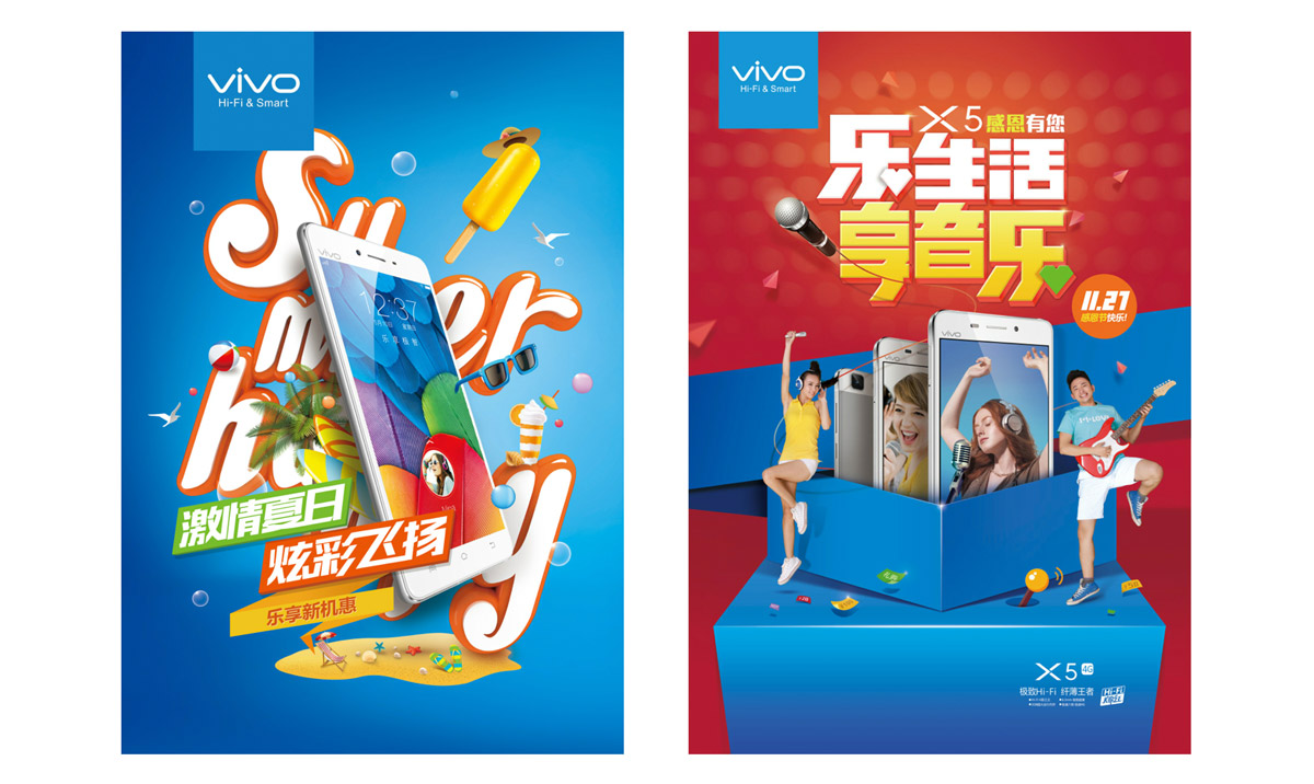 维沃智能手机品牌是战略级客户,自该品牌诞生之日起就介入了其品牌形象及全球营销设计体系的设计服务。服务内容涵盖了产品发布、平面海报、视频制作、展厅展会设计、电商运营设计等方面。2015年、2016年,获颁维沃“最佳支撑伙伴”奖,给予我方高度肯定。
