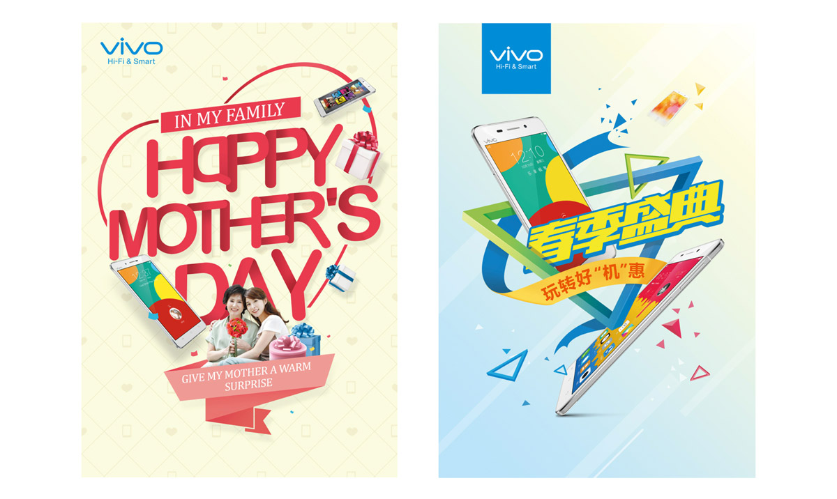 维沃智能手机品牌是战略级客户,自该品牌诞生之日起就介入了其品牌形象及全球营销设计体系的设计服务。服务内容涵盖了产品发布、平面海报、视频制作、展厅展会设计、电商运营设计等方面。2015年、2016年,获颁维沃“最佳支撑伙伴”奖,给予我方高度肯定。